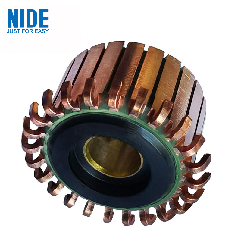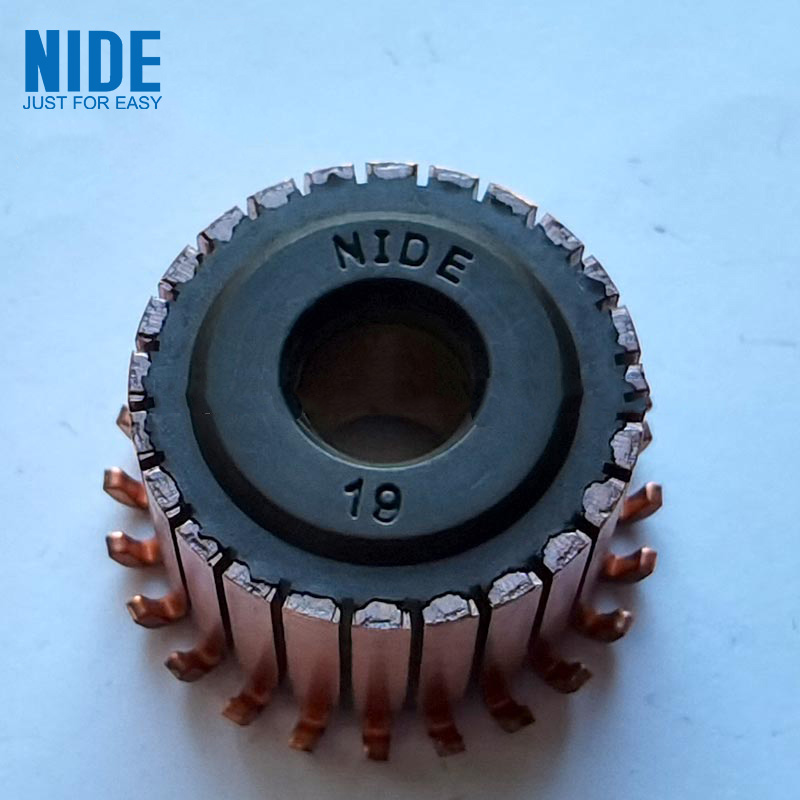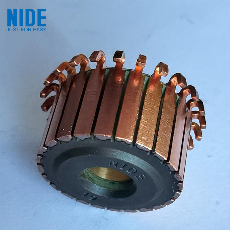 El conmutador del motor de la bomba de ósmosis inversa incluye una base reversible hecha de bamaterial de polvo ke lite y una lámina de cobre reversible tipo gancho dispuestas uniformemente en la circunferencia del cuerpo base reversible. La parte superior de la lámina de cobre reversible tipo gancho está provista de un gancho. Se proporcionan ranuras anulares reforzadas en las superficies extremas superior e inferior de la lámina de cobre reversible, y las láminas de cobre reversible de tipo gancho adyacentes están aisladas y aisladas por láminas de mica. La característica es que el anillo de refuerzo dispuesto en la ranura del anillo de refuerzo está rodeado por varios anillos. El número de perlas de cerámica es el mismo que el número de placas de cobre de conmutación tipo gancho.